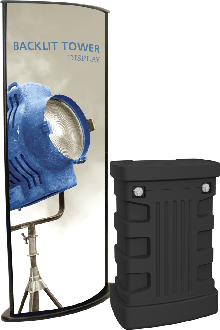 This cost effective, double-sided, free-standing 33" Backlit Tower features a sturdy construction and stylish design. The graphics are held under tension in a curved, eye-catching bubble position. Silver or black side extrusions are available and a backlighting kit is available to turn your tower into a lightbox.
