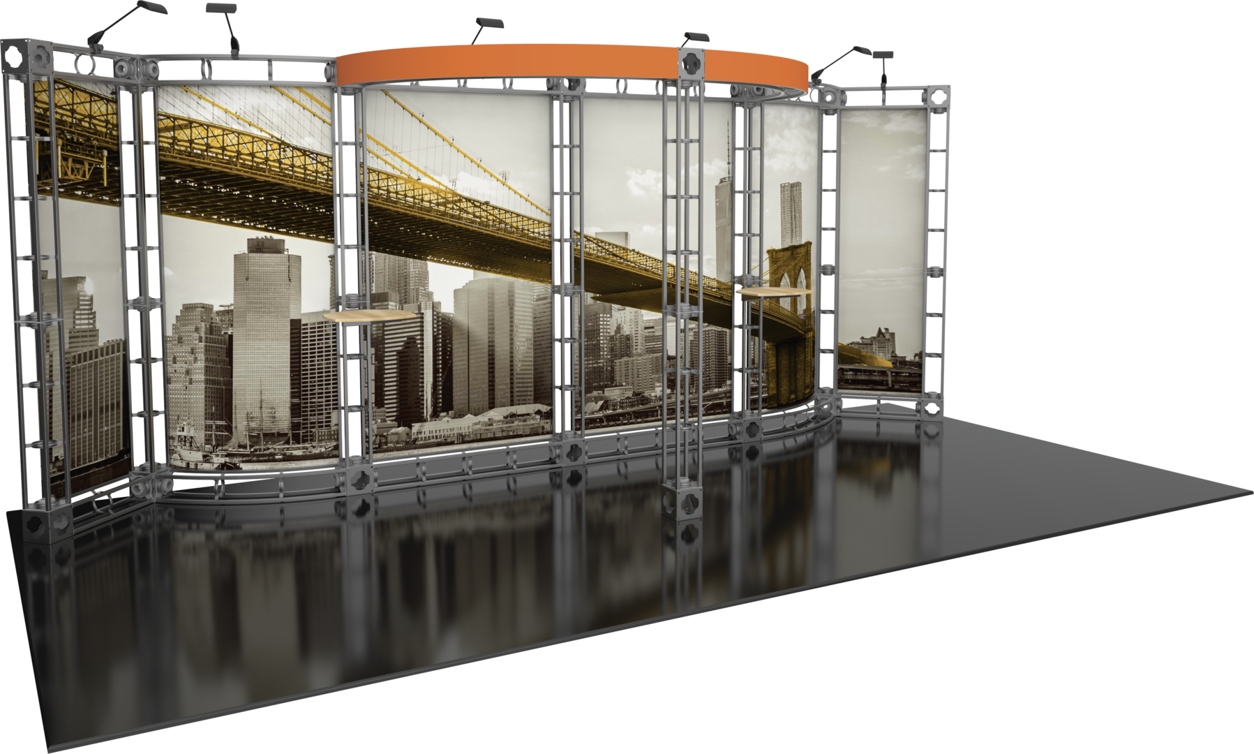 Graphic materials: Dye sublimated fabric or UV printed panels