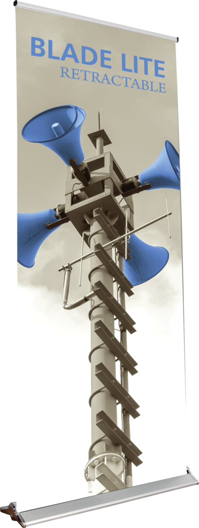 The Blade Lite 920 provides a variable height option ranging from 5' to 7' (60"-83.25"), providing a versatile option that can fit in many different displays. Graphic width measures at 3'. State of the art graphics store in the base, with setup taking seconds for this incredibly portable display.