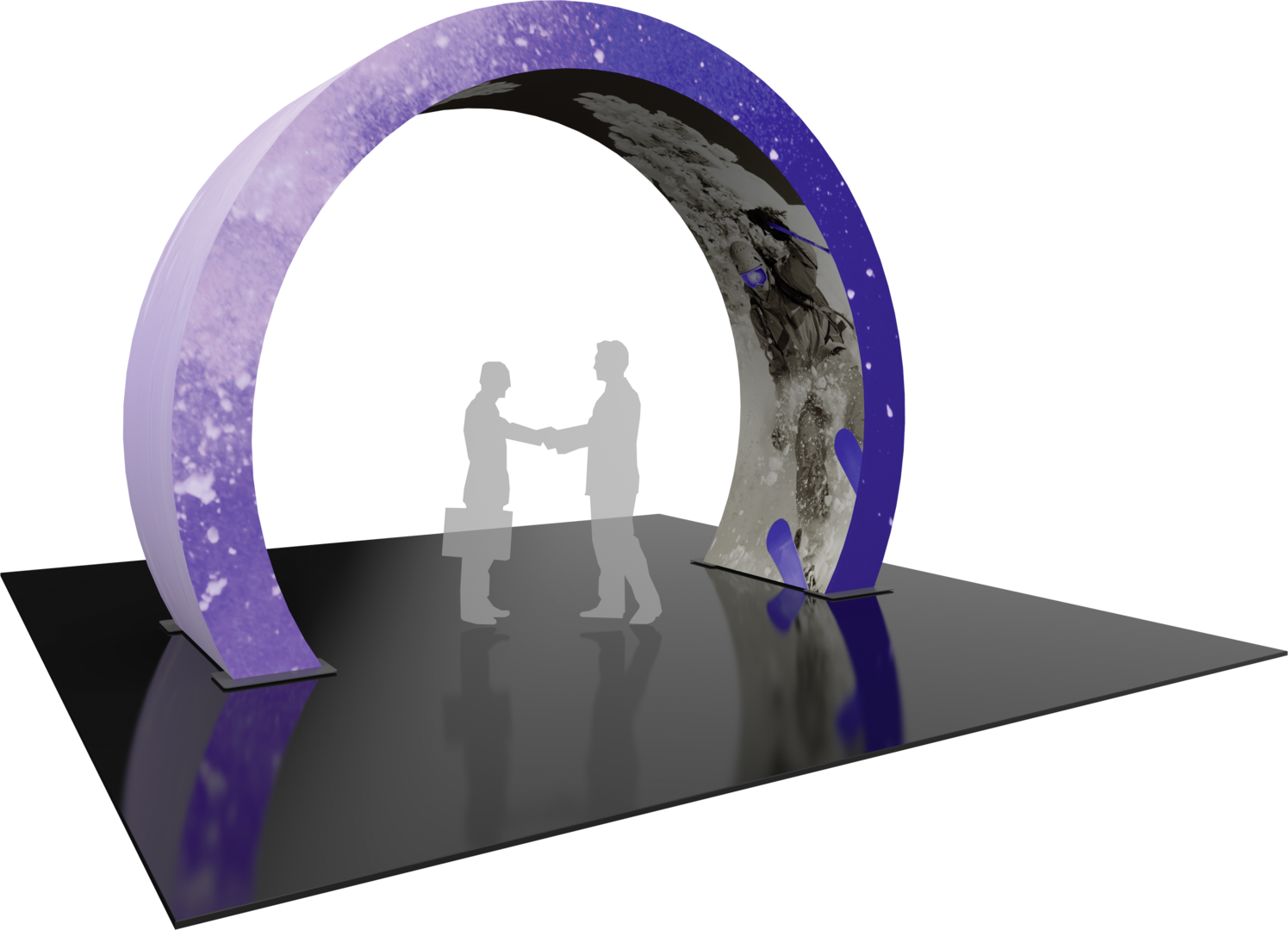 Formulate® 12.5ft tall Arch 06 adds dimension, structure and design to any event or interior space! Formulate Arch 06 couples aluminum tube frames with stretch, pillowcase fabric graphics to create a dynamic exhibit structures. Arch 06 spans nearly 24' wide, is nearly 12' tall and over 13' deep. Formulate architectural structures are made in the USA and collapse to a fraction of their size. Arch 06 packs easily into a wheeled case for easy storage and transport.