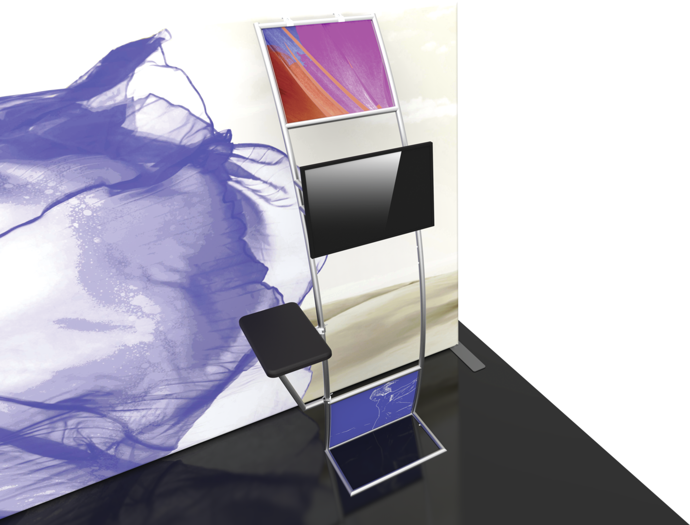 - Kit includes:one frame, two infill panel graphics, stand-off medium monitor mount, and one wheeled storage/shipping case