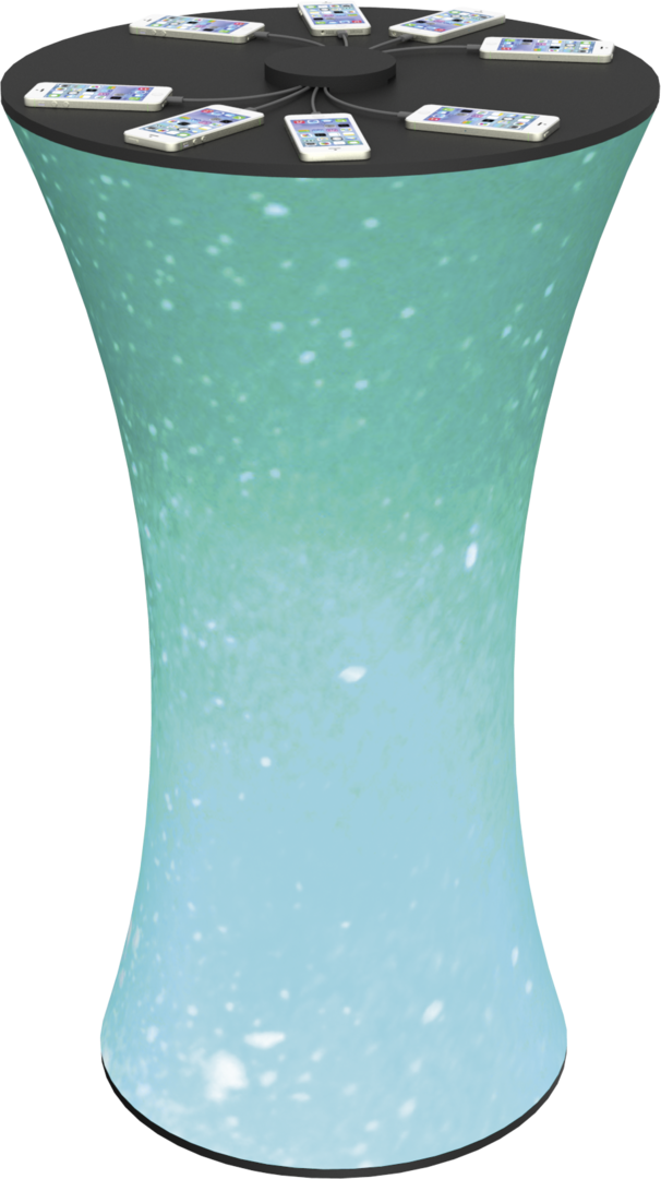 The Formulate® Charging Counter adds technology and great value for visitors in need of a quick charge. The Charging counter includes a sturdy countertop and base, push-fit stretch fabric graphics, and eight high-speed charging tips: four Android® micro USB and four Apple® 8-pin lighting. With a sleek appearance and high functionality, the Charging Counter is excellent for retail applications, trade shows and events.