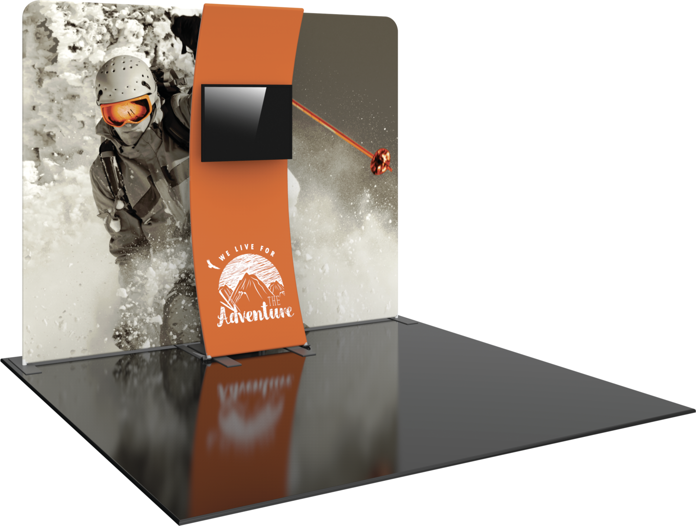 Formulate® Designer Series 10ft Fabric backwall Kit 06 is sophisticaed and sharp looking display that includes an aluminum tube frame featuring snap button/spigot connections, a tubular kiosk supporting a medium monitor mount for multimedia display and simple pullover zipper pillowcase fabric graphics. Designer Series Kit 06 comes in two portable, expandable wheeled transit cases for easy storage and transport. Assembly and graphic attachment is easy - simply pull the pillowcase fabric graphics over the frame and zip.