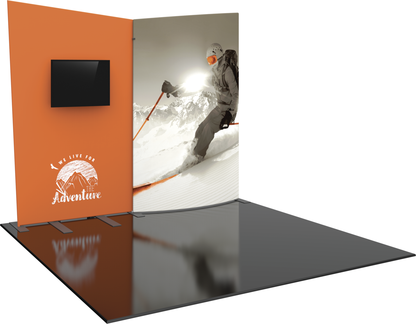 Formulate® Designer Series 10ft Fabric backwall Kit 09 has unique stylistic features and shapes, is portable and is easy to assemble. The two aluminum tube frames features spigot connections and zipper pillowcase fabric graphics. A curved panel draws the eye, and integrated monitor mount makes it easy to incorporate digital messaging into the backwall. Designer Series Kit 09 comes in two portable, expandable wheeled transit cases for easy storage and transport. Assembly is easy - simply connect the tubes, pull the pillowcase fabric graphics over the frame and zip.