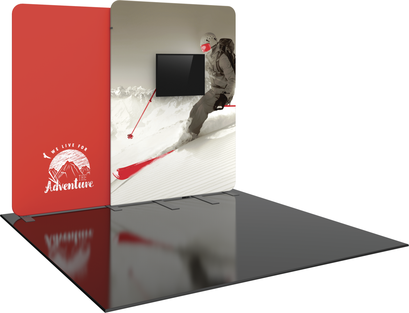 Formulate® Designer Series 10ft Fabric backwall Kit 10 has unique stylistic features and shapes, is portable and is easy to assemble. The two aluminum tube frames features spigot connections and zipper pillowcase fabric graphics. The curved corners create a soft appearance that draws the eye, and integrated monitor mount makes it easy to incorporate digital messaging into the backwall. Designer Series Kit 10 comes in a three portable, wheeled transit cases for easy storage and transport. Assembly is easy - simply connect the tubes, pull the pillowcase fabric graphics over the frame and zip.