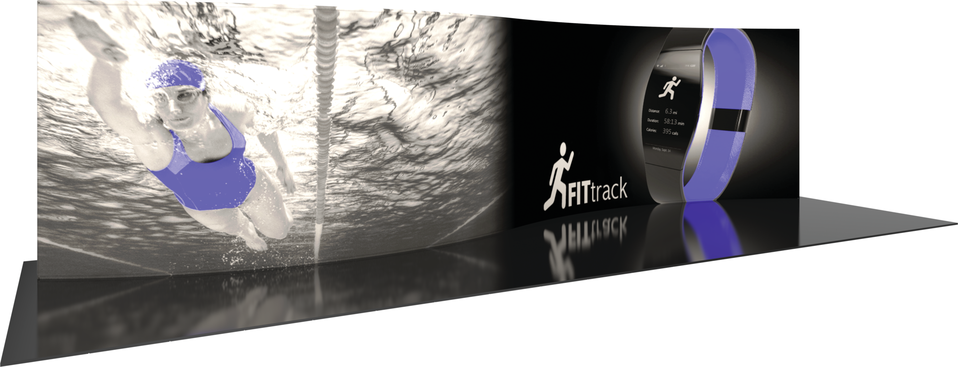 Formulate® Designer Series 30ft Backwall Kit 06 is a serpentine shaped display that creates a nice flow in any space. The aluminum tube frame features snap-buttons/spigot connections and one zipper pillowcase fabric graphics. Assembly is simple - connect the tubes, pull the graphics over the frames and zip.