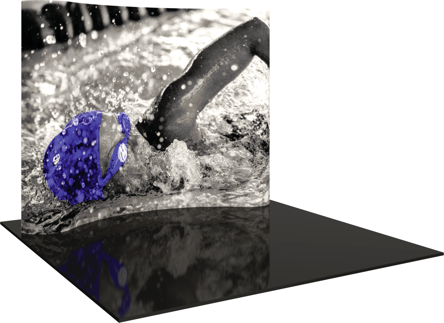 The Formulate® Essential 10ft Horizontal Curve Fabric Display has a customary frame and is portable. The economy aluminum tube frame features bungee cords, rounded corners and comes with a one year limited warranty. Simply pull the pillowcase fabric graphic over the frame and zip. All 10ft displays come with a canvas carry bag.