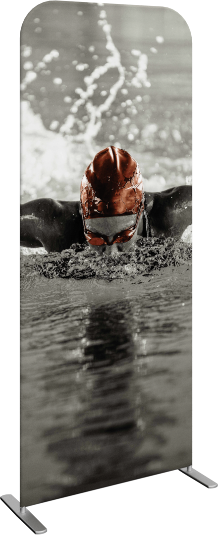 The Formulate® Essential Banner 850 - Straight measures 33.5"W, 92"H and features a simple straight bungee-corded tube frame and a fabric graphic that simply slips over the frame. Perfect for any environment - from retail to trade show!