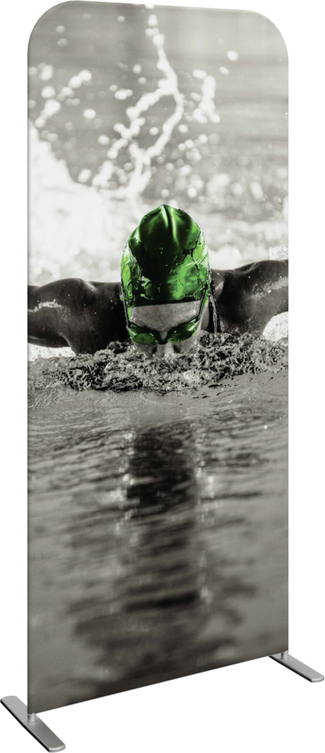 The Formulate® Essential Banner 920 - Straight measures 36.5"W, 92"H and features a simple straight bungee-corded tube frame and a fabric graphic that simply slips over the frame. Perfect for any environment - from retail to trade show!