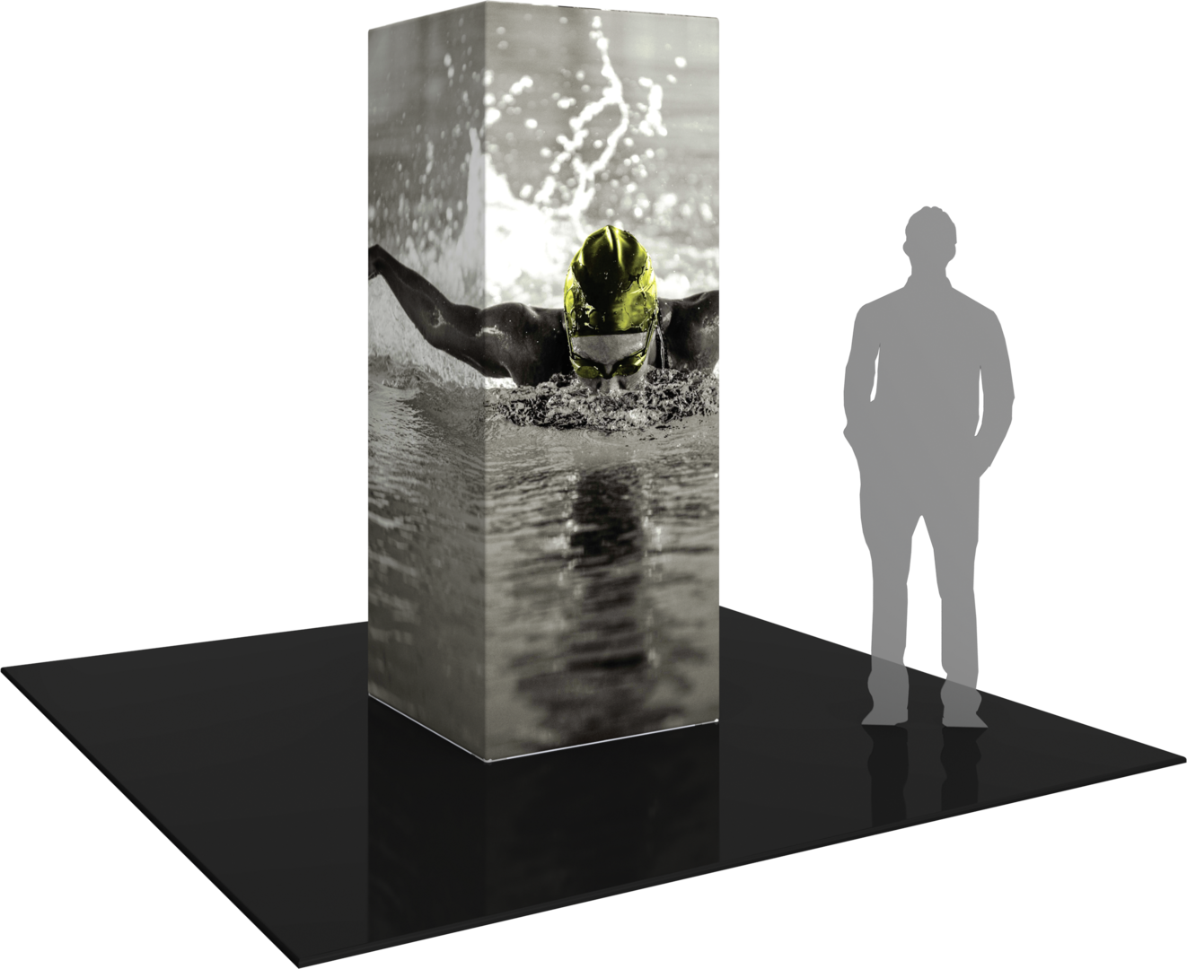 The Formulate® 8ft Four Sided Fabric Tower 03 can transform any environment through form, fabric and lighting. The rectangular-shaped tower is 8ft tall and 3ft square at the top and bottom. Formulate Four Sided Fabric Tower 03 combines the latest developments in fabric printed technology with aluminum tube frames to add dimension, decor and sculpture to any event, stage set, tradeshow booth or interior space. Simply mix and match with other Formulate towers to add architecture and drama to any event or interior space. Formulate Tower 03 accommodates internal LED lighting (sold separately) to create a glowing effect. Four Sided Tower 03 packs easily into a wheeled OCL case for easy storage and transport.