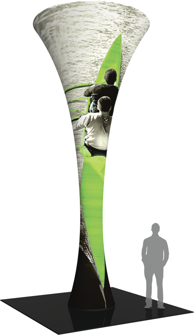 The 20ft Formulate® Fabric Funnel 01 can transform any environment through form, fabric and lighting. Formulate Funnel 01 measures 20ft tall, and features a heavy-duty wooden base and silver powder coated truss interior to create a dynamic, towering structure that commands attention. Fabric graphics feature a zipper at the top and a silicone edge at the bottom for easy assembly. Accent LED light kits are not included, but can be purchased a la carte to add a glow within the funnel. Funnel 01 packs down into two wheeled OCH2 cases for easy storage and transport.