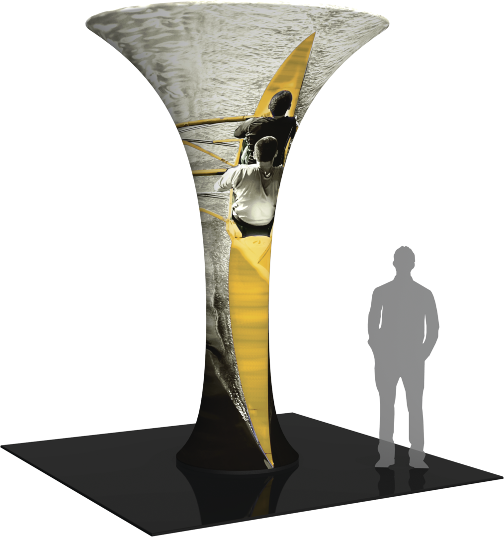 The 12ft Formulate® Fabric Funnel 03 can transform any environment through form, fabric and lighting. Formulate Funnel 03 measures 12ft tall, and features a heavy-duty wooden base and silver powder coated truss interior to create a dynamic, towering structure that commands attention. Fabric graphics feature a zipper at the top and a silicone edge at the bottom for easy assembly. Accent LED light kits are not included, but can be purchased a la carte to add a glow within the funnel. Funnel 03 packs down into two wheeled OCH2 cases for easy storage and transport.