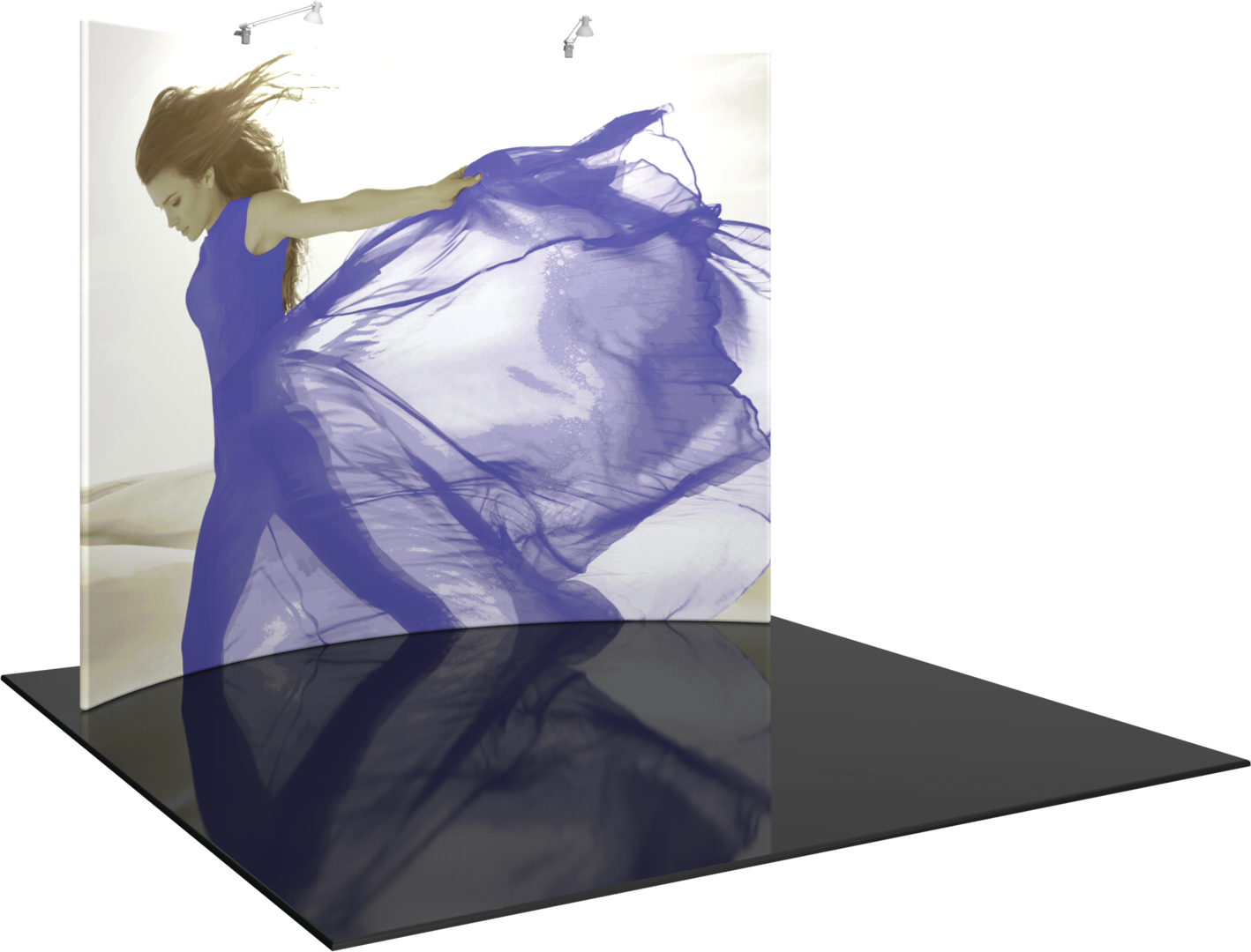 The Formulate® 10ft Horizontal Curve 2 Tension Fabric Display is a sophisticated, horizontally curve shaped exhibit booth. Vibrant, high-quality pillowcase graphics stretch over the lightweight aluminum tube frame, allowing for quick and easy set up. This display includes two spot lights helping to illuminate the displayed brand and message. Stretch fabric graphics are hand-sewn, durable and dry-cleanable.