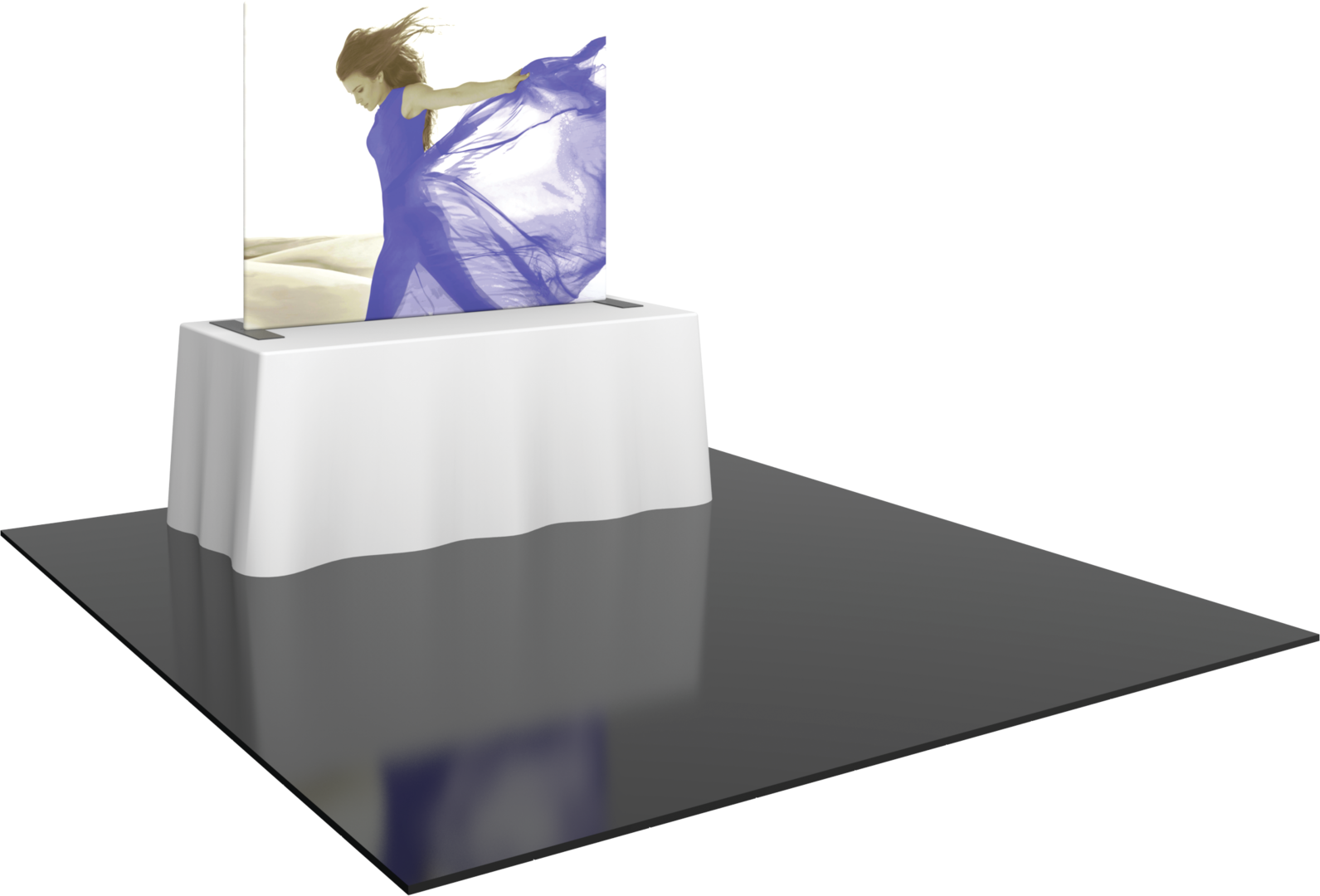 The Formulate® TT4 Tabletop Fabric Display is lightweight, highly-portable and features a straight frame, and flat support feet. The frame assembles with easy-to-use snap buttons, then simply pull the pillowcase fabric graphic over the frame and zip. Stretch fabric graphics are hand-sewn, durable and dry-cleanable.