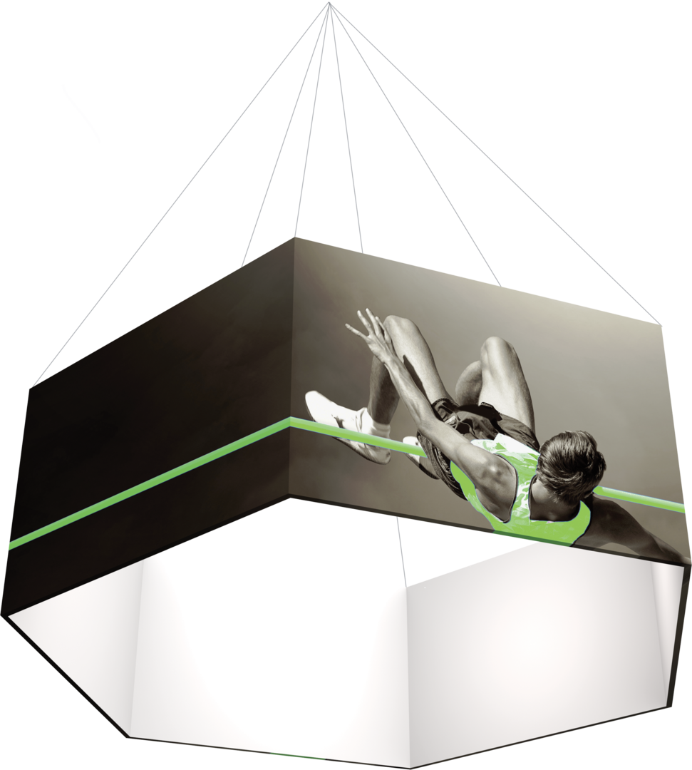 - Hexagon hanging structures can also be shipped in expandable rugged molded shipping cases (OCE; sold separately). The 8' and 10' wide models ship in 2 boxes/cases, while the larger sizes ship in 3.