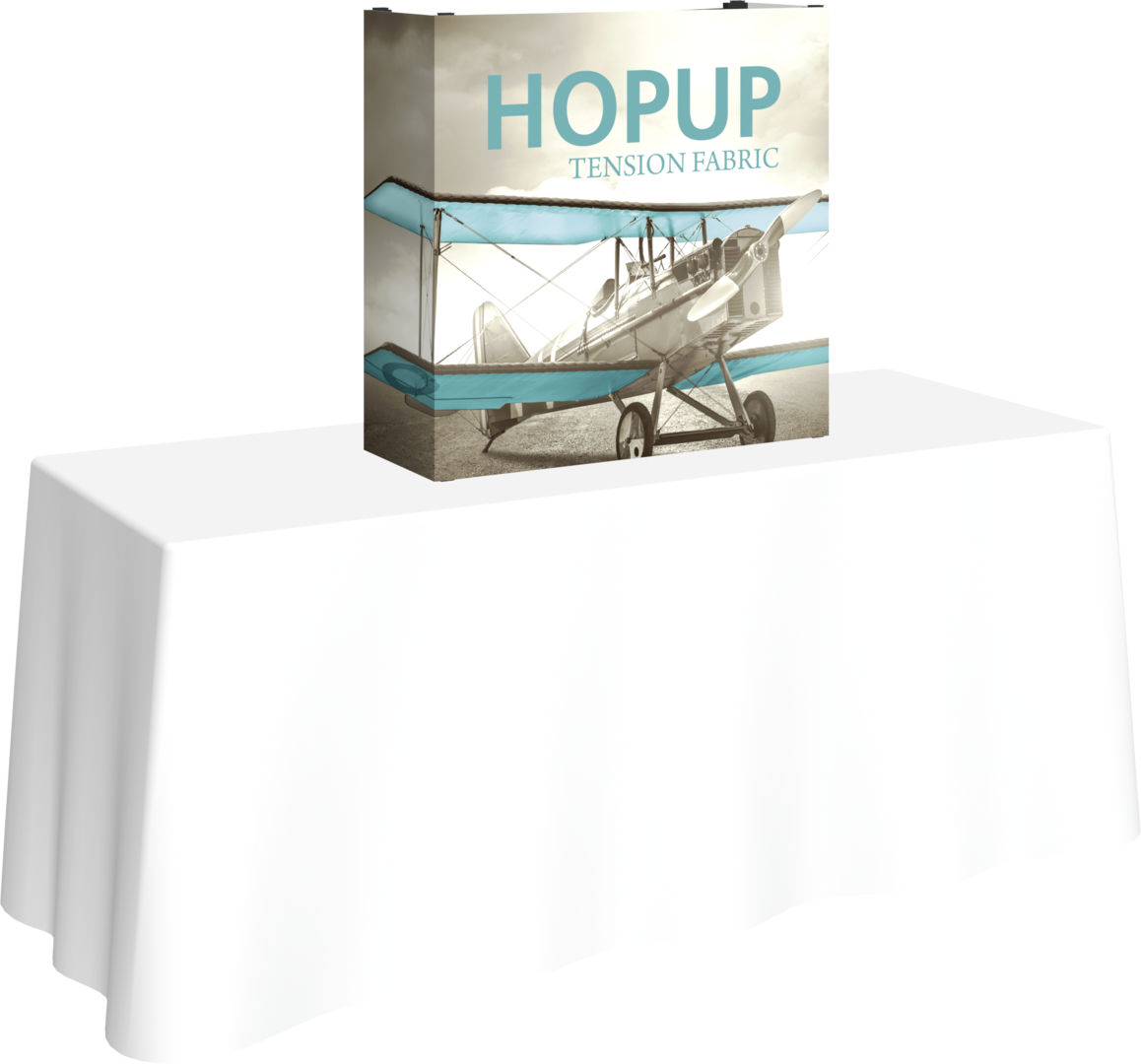 Hopupâ„¢ 2.5ft (1 quad x 1 quad) tension fabric pop up display is the perfect display for a variety of environments, including events and trade shows, retail, corporate and more. This versatile display is incredibly easy to set up and take down. The collapsible aluminum frame sets up in seconds without the use of tools. Included is a rolling carry bag that makes transport, shipping and storage a breeze!