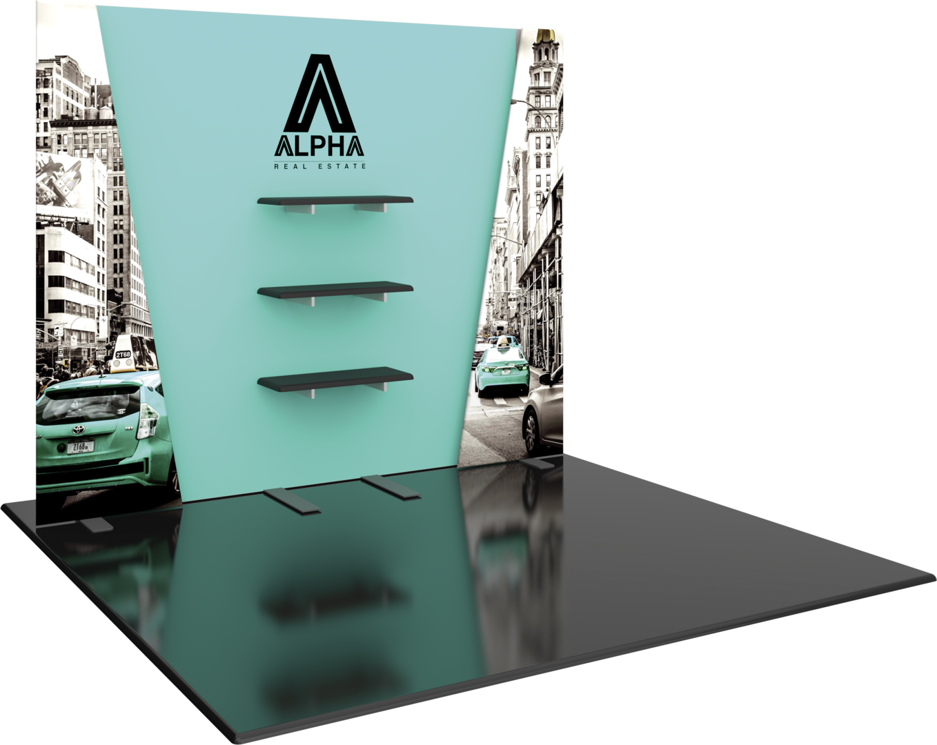 Hybrid Pro™ Modular Kit 27 is a minimal, yet sophisticated modular exhibit that features three fabric backwalls, the center wall with three shelves for small product display. Experience how less is more with this simple and sophisticated modular display.