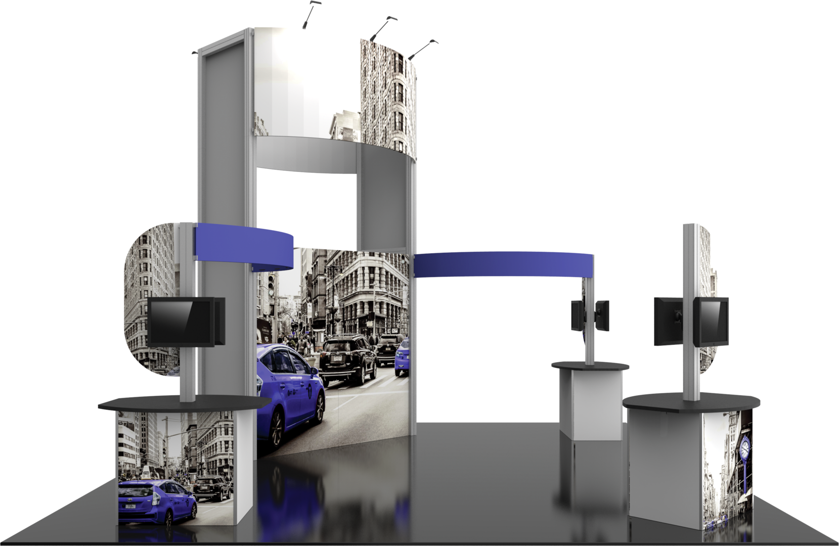 - Kit includes frame, accessible lockable storage space, four pillowcase graphics, two fabric graphic panels, three shaped Sintra panels, three counters, six small monitor mounts*, six 200 LED floodlights, two molded OCE storage cases and one woodcrate