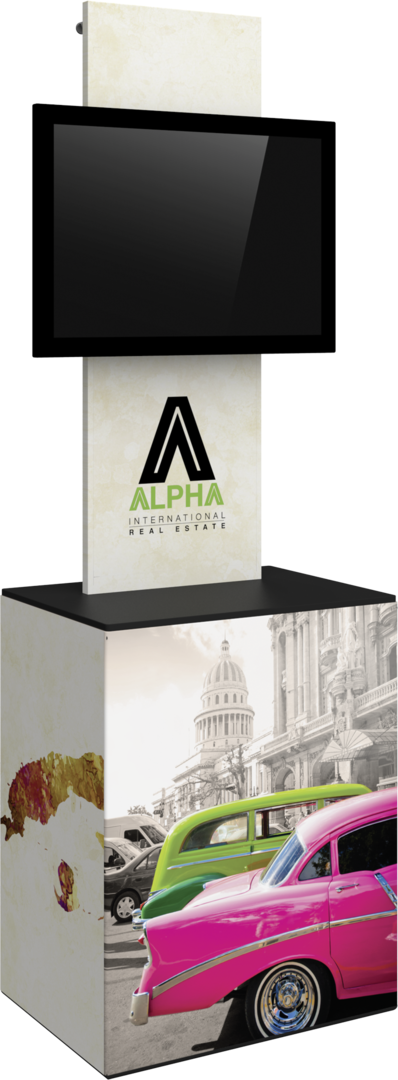 The Modulate⢠Ladder Accent 02 is the perfect functional accent for Modulate Banners 09, 10, 13 and 14. The Modulate Ladder 02 helps you display videos and promotional content at events, in tradeshows and in all types of interior spaces. Printed fabric graphics provide branding, messaging and advertising opportunities. Magnetic counter provides interior shelf and functional storage space. Frame that holds monitor mount assembles using simple, snap-buttons and connects to the Modulate banner 09, 10, 13 and 14 using adjustable clamps. Modulate Banners sold separately.