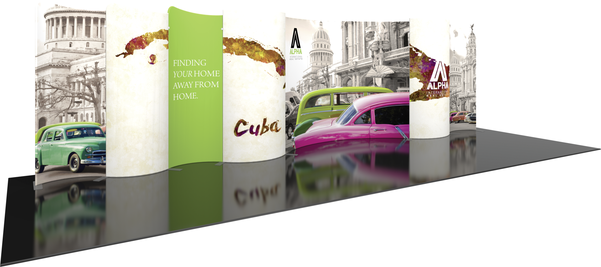 Modulate 30ft Kit 01 consists of seven curved, magnetic banners. Kit 01 reconfigures into a 20ft wide display, OR into two 10ft wide displays. Maximize your value in this versatile, reconfigurable system. Modulate Reconfigurable Kits