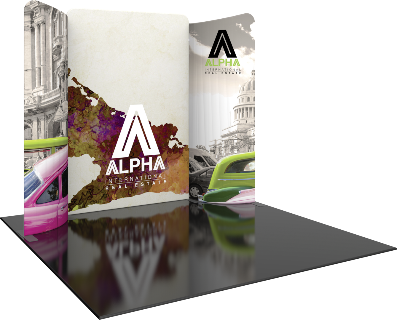 Modulate 10ft Kit 10 consists of two curved, magnetic fabric banners and one straight, magnetic fabric banner. Create an impact with a stylish 10ft wide inline display and/or repurpose as individual banners and maximize your value! Modulate Reconfigurable Kits