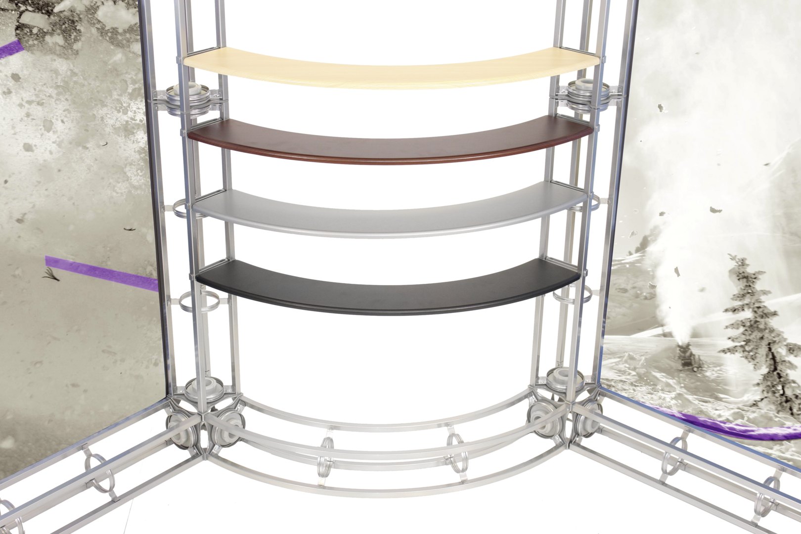 Shelf color options: silver, black, mahogany, natural