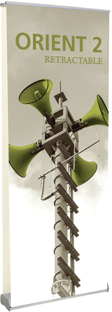 The Orient 800 double sided retractable banner stand is a simplistic, yet elegant display solution. With a dual retractor mechanism, the Orient 800 provides dual sided capability by allowing two custom graphics back to back. A durable base is supported by molded end caps, and a padded carry and shipping bag is included.