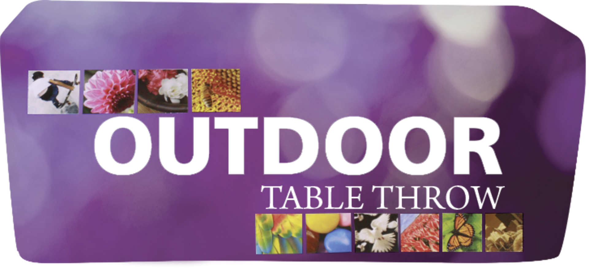 Outdoor table throws are form-fitted to standard 8ft and 6ft tables, creating a wind-resistant, secure accent for outdoor displays. Fully-printed in the USA on water and spill resistant outdoor canvas to create durable, full-color graphics, the Outdoor table throw will complete any outdoor event or display.