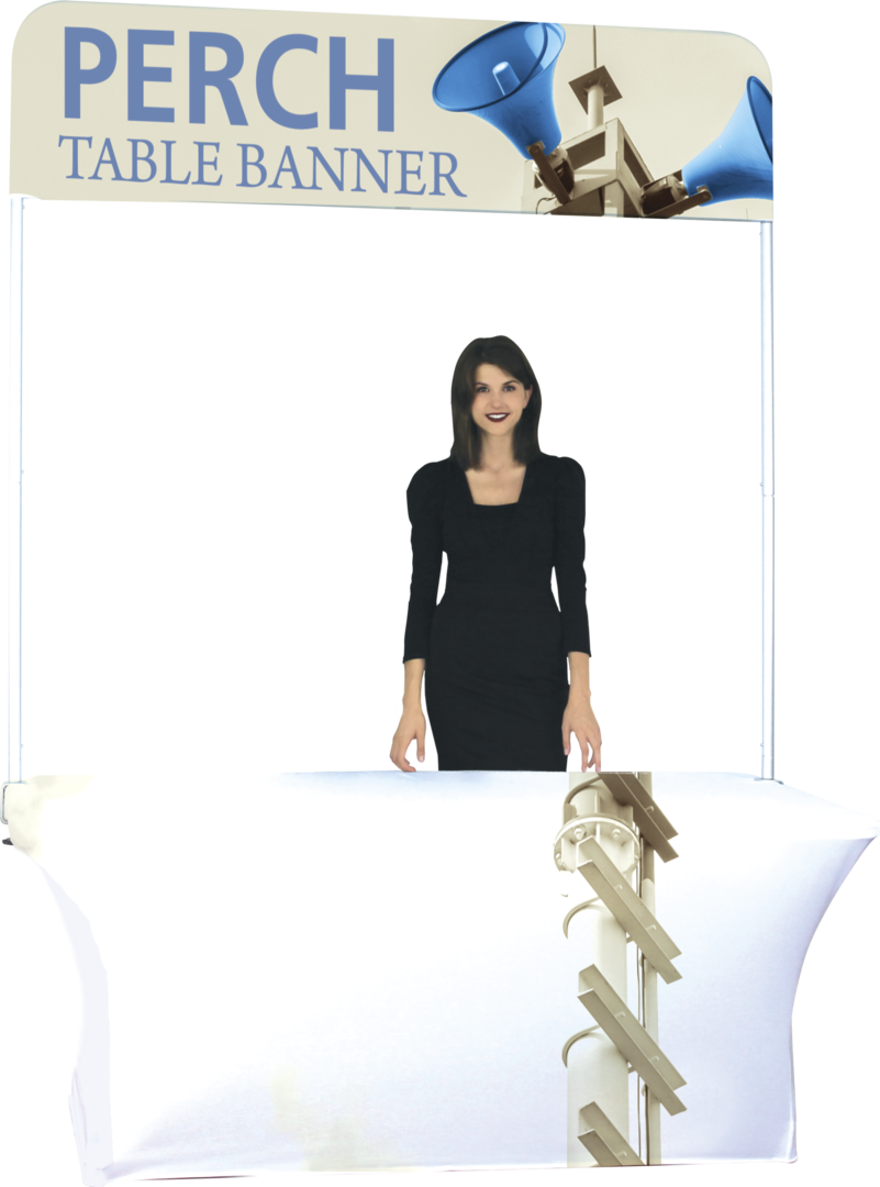 Perch 6 is a versatile table banner display that attaches to standard 6ft tables with no tools necessary. The lightweight aluminum tube frame can be converted easily to create a short, medium or tall fabric backwall accent for your tabletop display. Simply choose your height, attach to the side of the table and go. Perch is ideal for use at trade shows, events and in retail environments A convenient carry bag makes storage and transportation simple.