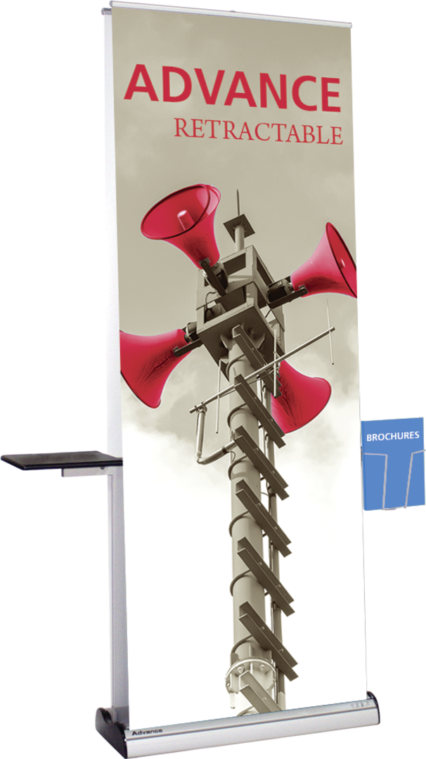Premium Banner Stand Accessory Kit 01 is a unique addition to the Imagine, Barracuda, Excalibur and Advance premium banner stands. The tabletop and literature pocket instantly turn these premium stands into a full display solution with space to show products and hold product information literature.