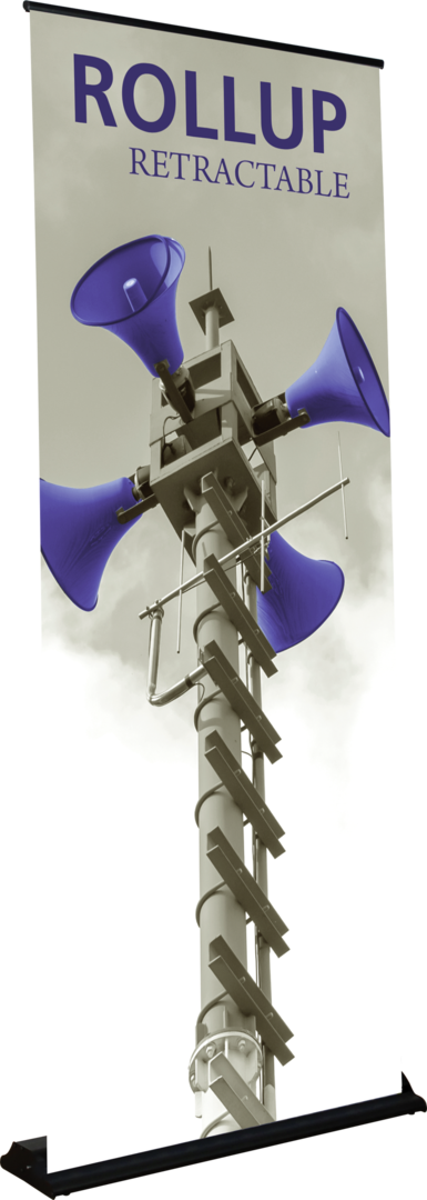 Designed to stand the test of time, the Rollup is a single-sided, sleek and stylish retractable banner stand display that is convenient and easy to use. Rollup features a black heavy-duty base, 3-piece bungee pole, graphic and padded carry bag.