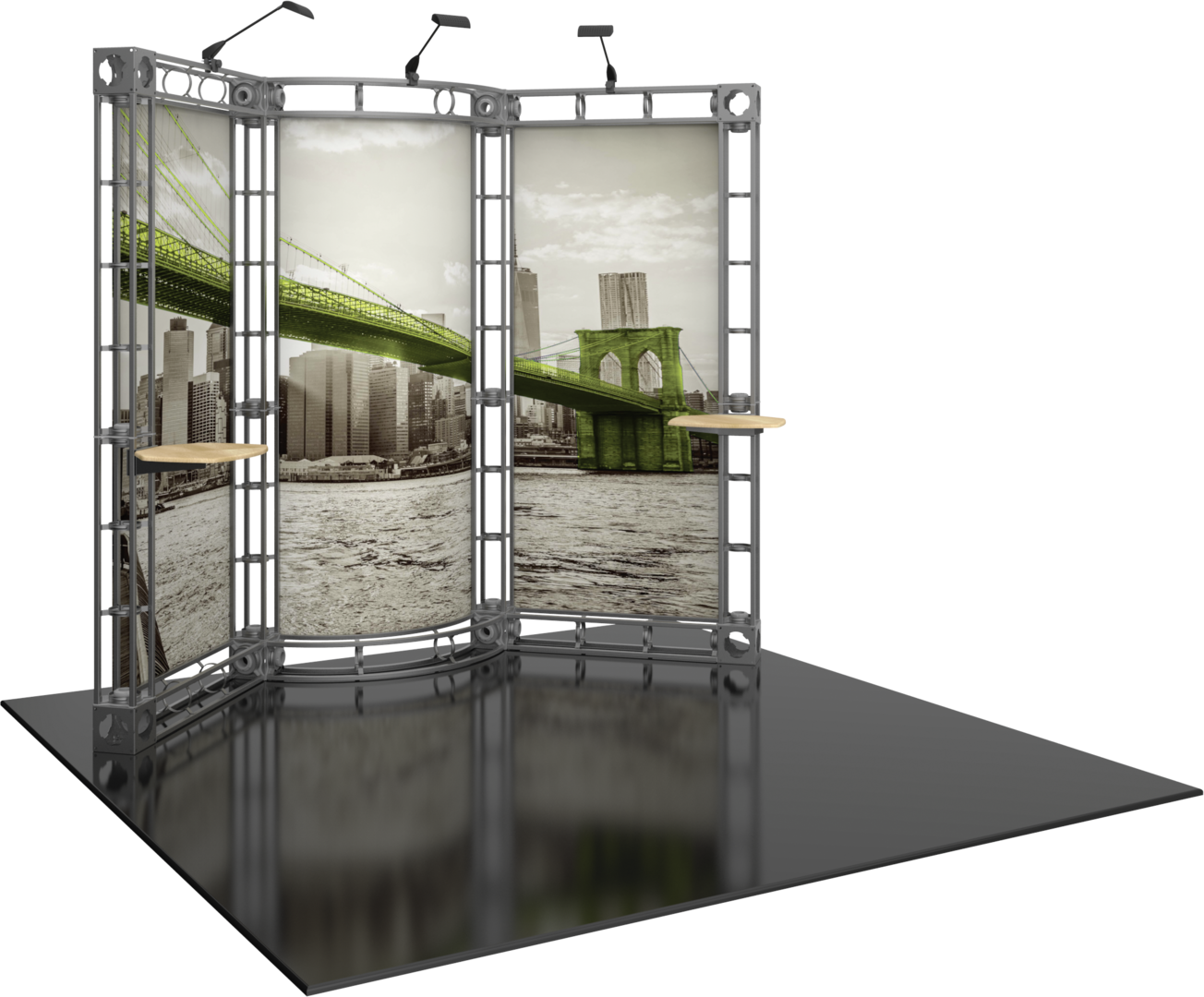 Graphic materials: Dye sublimated fabric or UV printed panels