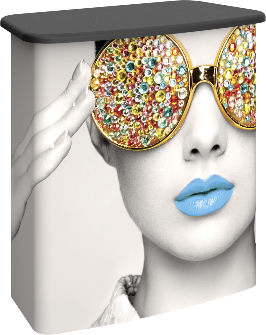 Vector Frame⢠Counter 03 complements the Vector Frame series of exhibit kits, but is also ideal for any stand-alone event or display. Featuring a rectangular shape and tabletop available in four color finish options, Vector Frame Counter 03 includes simple extrusion-based frames, an internal shelf and your choice of push-fit fabric or rigid graphics.