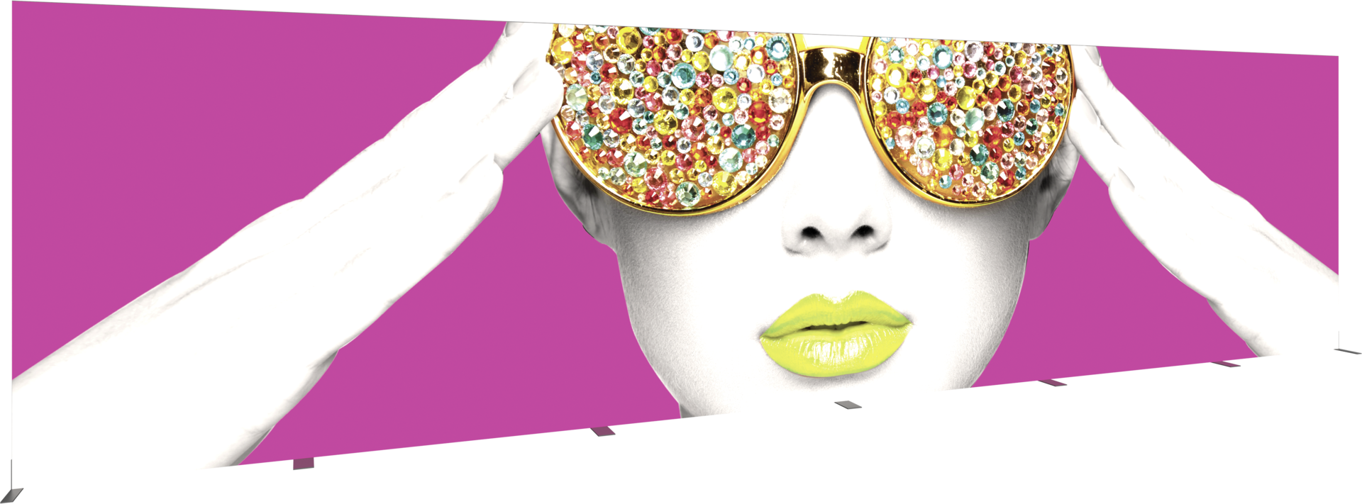 Vector Frame⢠fabric light box Rectangle 08 spans near 30ft wide and features a durable 100mm aluminum extrusion frame, one large, seamless push-fit backlit fabric graphic and LED edge lighting. Single and double-sided graphic options are available. LED lights come adhered to the frame, making set-up as simple as assembling the frame, applying the push-fit graphics and plugging in the electrical cord! Vector Frame Light Box R08 is ideal for use in retail, event, corporate and trade show environments as an illuminated messaging solution.