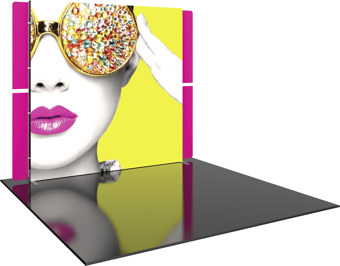 The stylish, clean and modern appearance of Vector Frame⢠Master 10ft x 10ft inline Kit 15 will captivate your audience. Kit 15 features push-fit fabric graphics, an easy-to-assemble extrusion frame with curved corners and rigid graphic wing accents. The center panel is ILLUMINATED, which makes your messaging stand out at events, trade shows and more! Make an impression on any audience with Vector Frame 10ft x 10ft Kit 15.