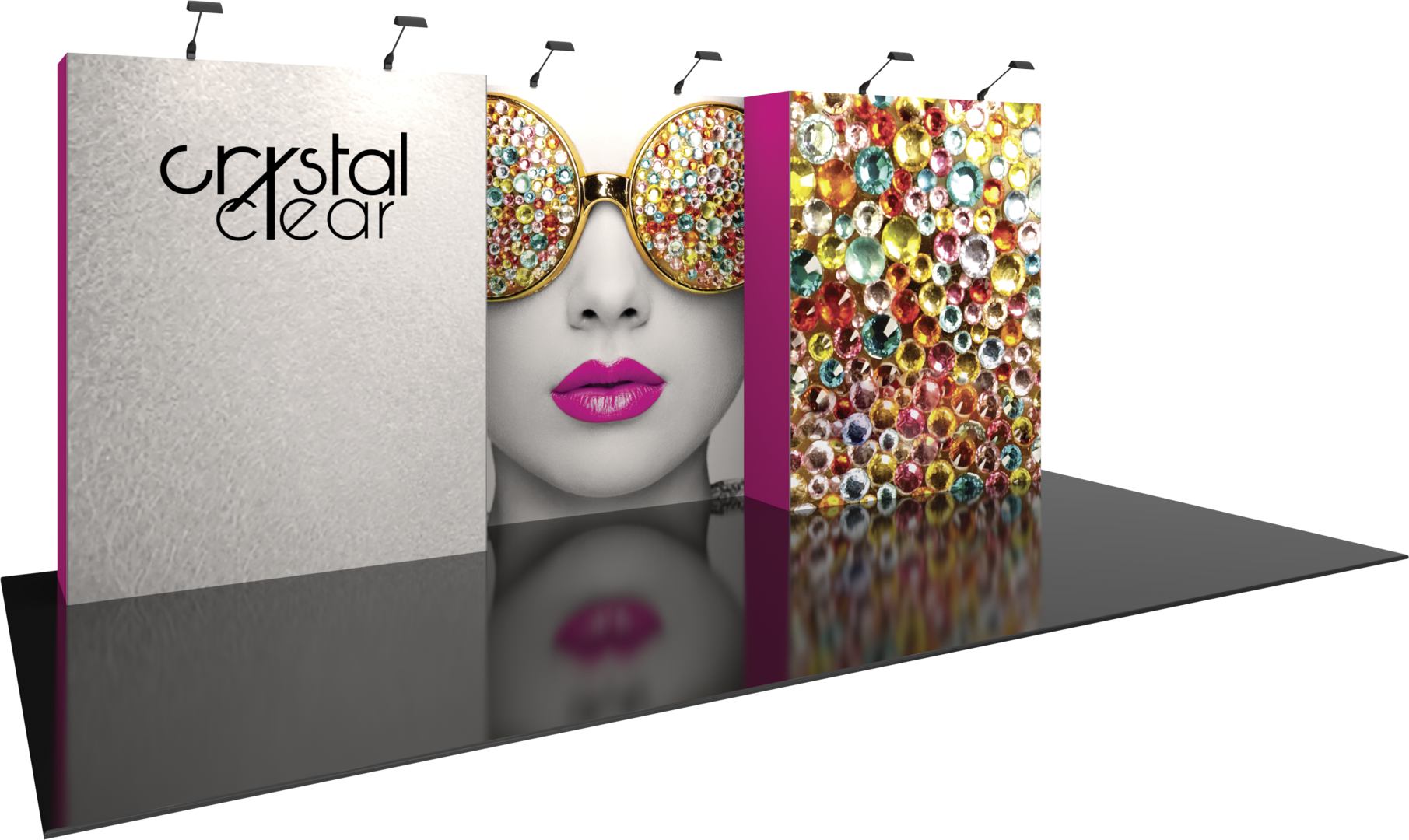 - Kit includes: one frame, seven fabric graphics, six 120 watt floodlights, one wheeled molded case