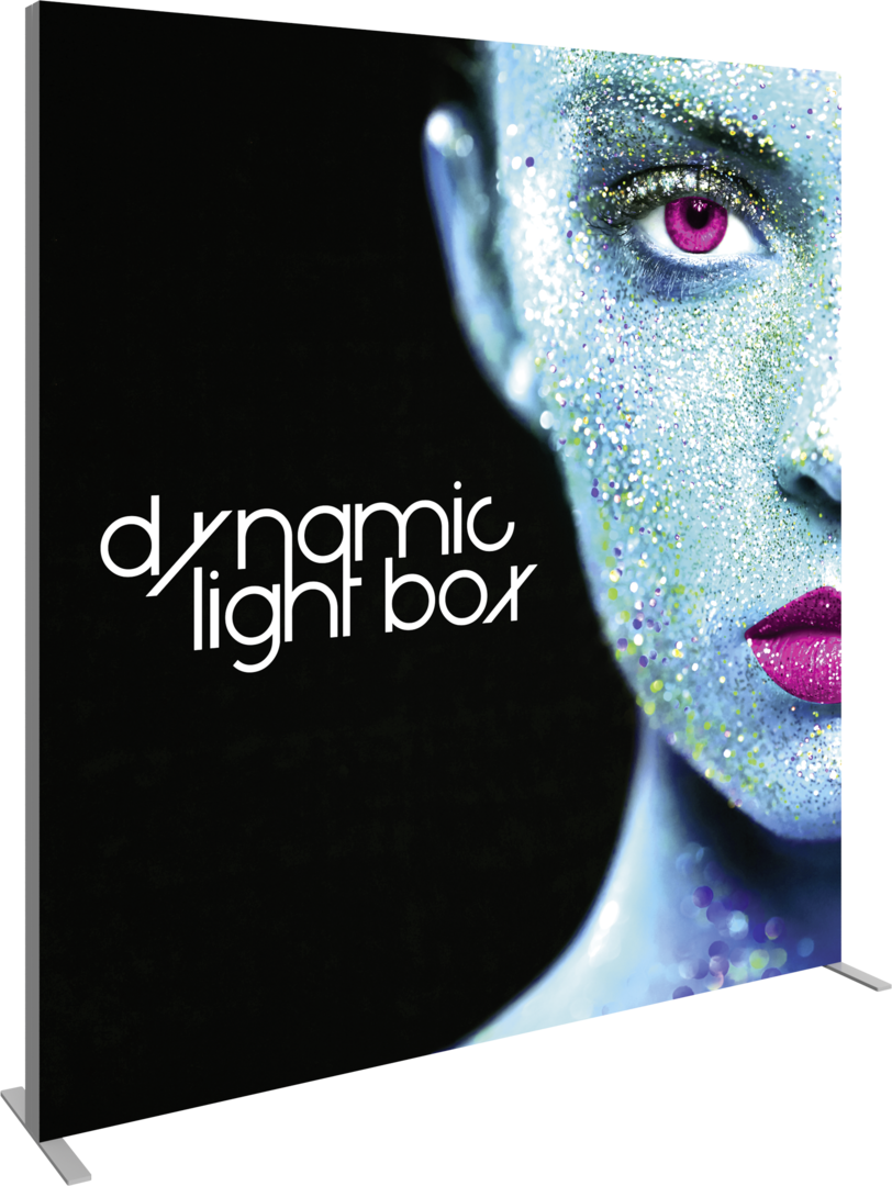 - Kit includes frame, light curtains, single-sided backlit Intensity push-fit fabric graphic, opaque liner and wheeled, molded shipping case