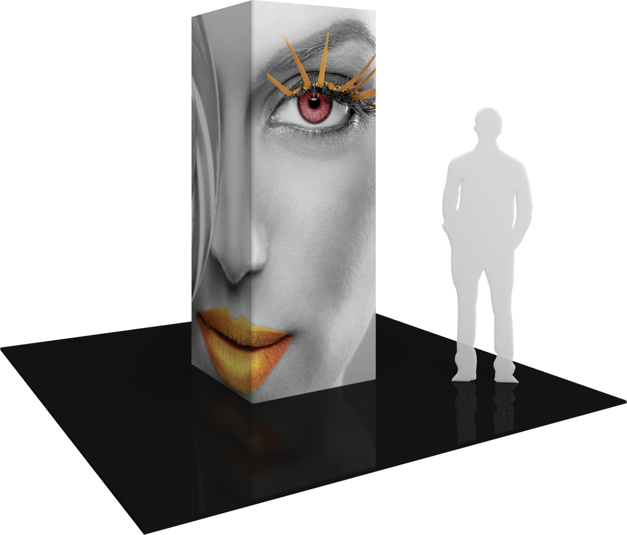 The Vector Frameā„¢ Modular Tower 01 is an impressive architectural structure utilizing push-fit fabric graphics and extrusion based frames to create a commanding display for any interior environment. Measuring 8'h and 3' square at the top and bottom, this rectangular display is the perfect statement piece. Each kit comes with a molded, wheeled case for easy storage and transportation.