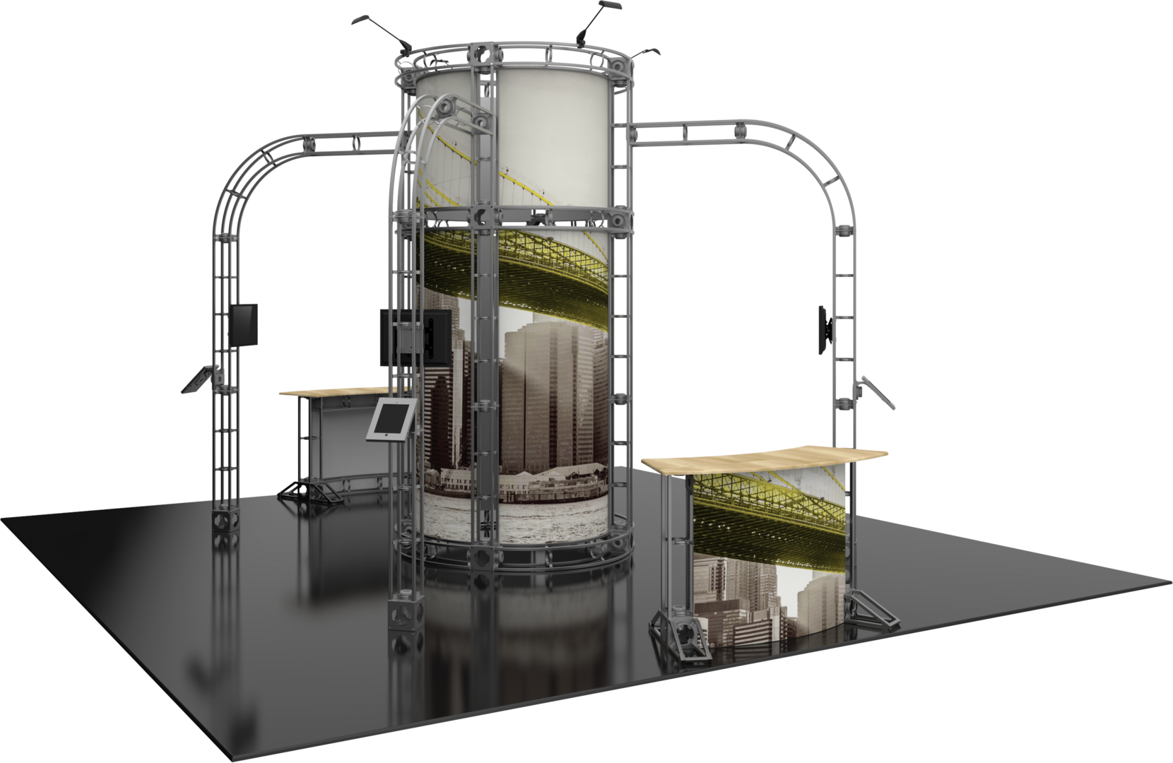 Graphic materials: Dye sublimated fabric or UV printed panels