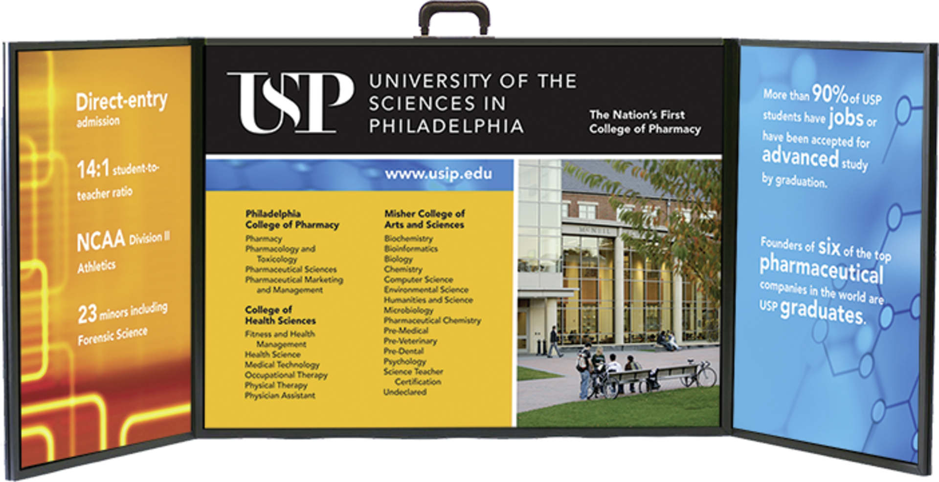 The Voyagerâ„¢ Mini has been specially developed as a briefcase style, tabletop display and is a great choice for promotions on the go. It measures 48in wide when open, and has a rigid, thermos-formed ABS exterior and a black, Hook and loop compatible fabric interior. Optional detachable 22mil PVC graphics and header panels available. Extra graphics can be stored in the display and packed away for easy storage. Voyager Mini has a lifetime hardware warranty against manufacturer defects.