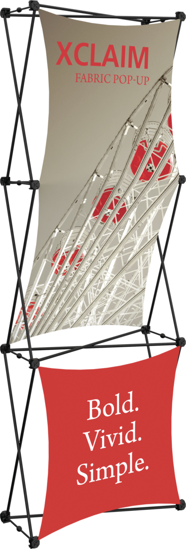 The Xclaim 2.5ft wide (1 Quad x 3 Quad) Kit 02 is a versatile stretch fabric popup display. Add dimension to your event or tradeshow with unique, exciting graphic styles. The Xclaim 2.5ft wide (1 Quad x 3 Quad) Kit 02 is easy to setup, lightweight and portable. The collapsible popup frame is fully magnetic (with magnetic linking connectors), making it simple to assemble and disassemble. Stretch fabric graphics come pre-attached to the frame, making assembly easy and fast. Graphics adhere to the hubs using push-fit attachment technology. Xclaim 2.5ft wide (1 Quad x 3 Quad) Kit 02 comes with graphics, frame and soft case with a shoulder strap.
