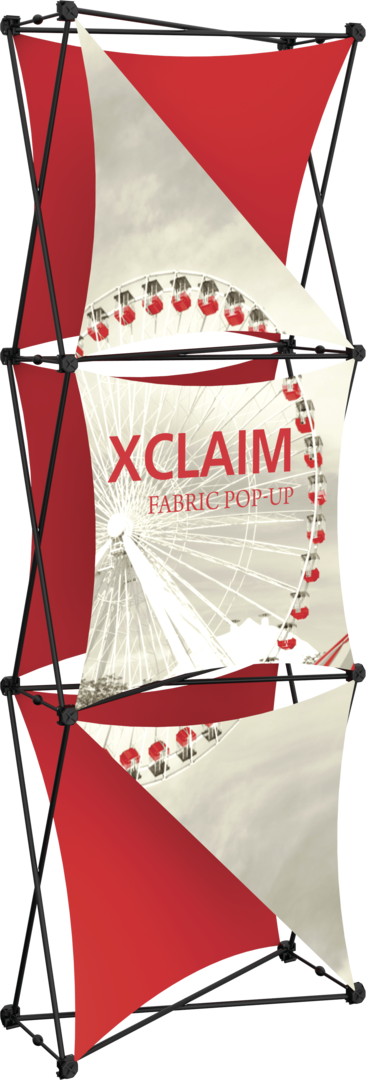 The Xclaim 2.5ft wide (1 Quad x 3 Quad) Kit 04 is a versatile stretch fabric popup display. Add dimension to your event or tradeshow with unique, exciting graphic styles. The Xclaim 2.5ft wide (1 Quad x 3 Quad) Kit 04 is easy to setup, lightweight and portable. The collapsible popup frame is fully magnetic (with magnetic linking connectors), making it simple to assemble and disassemble. Stretch fabric graphics come pre-attached to the frame, making assembly easy and fast. Graphics adhere to the hubs using push-fit attachment technology. Xclaim 2.5ft wide (1 Quad x 3 Quad) Kit 04 comes with graphics, frame and soft case with a shoulder strap.