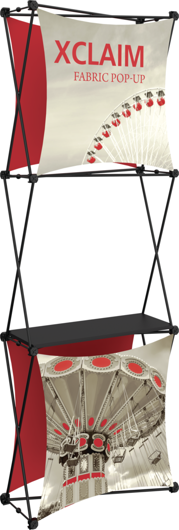 The Xclaim™ Shelf is an optional 2.5ft wide (1 quad) shelf accent for Xclaim Fabric Popup displays. Attaching shelves to assembled Xclaim units is easy. No tools are required for assembly – simply attach stabilizing clips to the Xclaim scissor arms, and place the shelf on top! Shelves are the perfect accent to add product, additional space for printed literature or to enhance your Xclaim display. Choose from four color options for the solution that is right for your display.