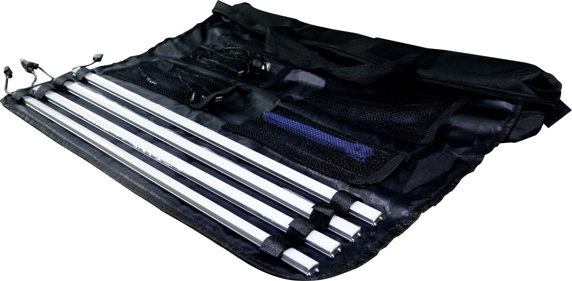 - Kit includes 4 USB LED lights, carry case, 4-way USB splitter, 2m extension USB cable and 4 hook and loop straps